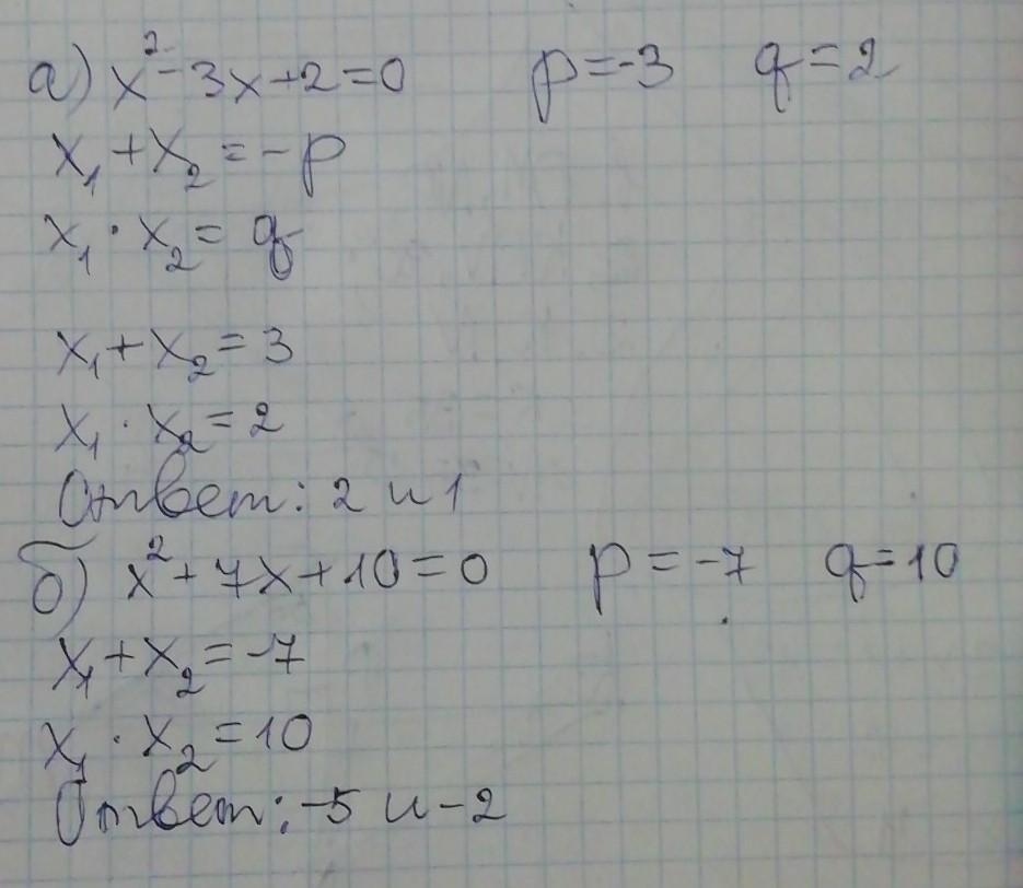 Найдите корни уравнения не используя формулу квадратного уравнения а) х^2-3х+2=0, б) х^2+7х+10=0
