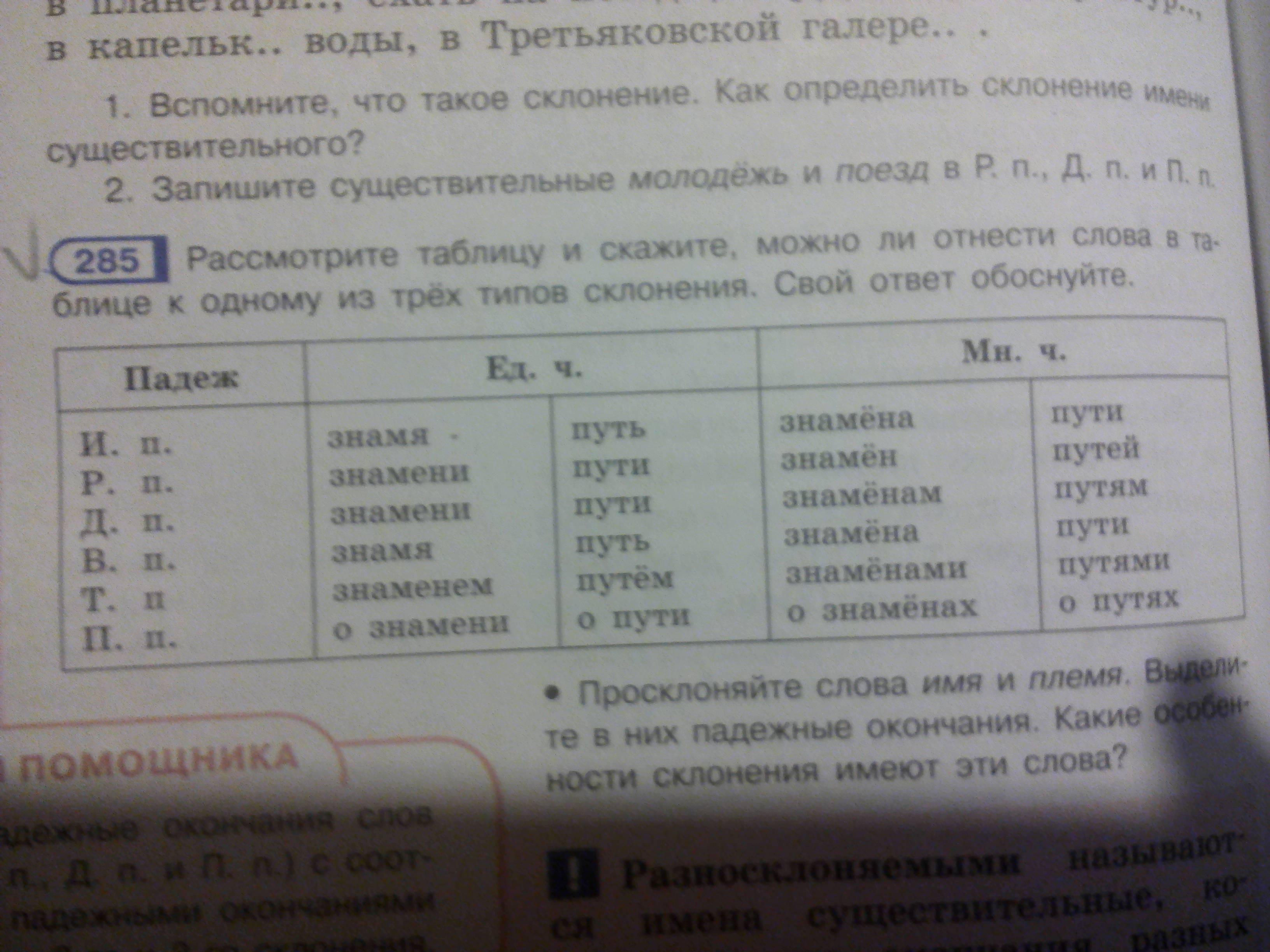 Расмотрите таблицуи скажите,можно ли отестиотнести слова в таблице к одному из трех типов склонения,свой ответ обоснуйте.