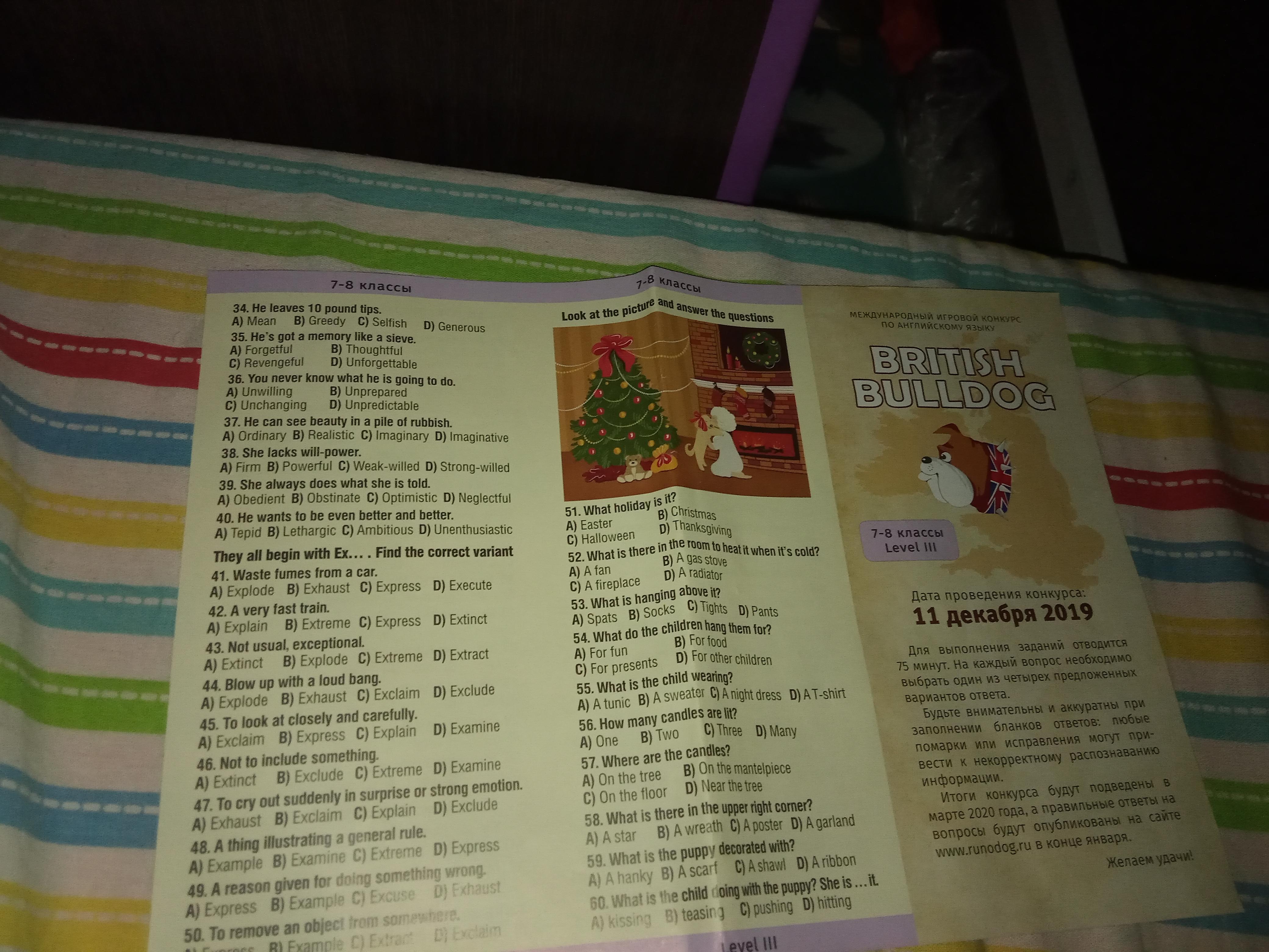 Дайте пожалуйста ответы на (все задания) британский бульдог 2019 2020 7-8 класс. Даю 40 баллов