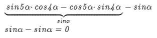 (sin5α·cos4α-cos5α·sin4α) - sinα ⇔ sin(5α-4α)-sinα=sinα-sinα=0
