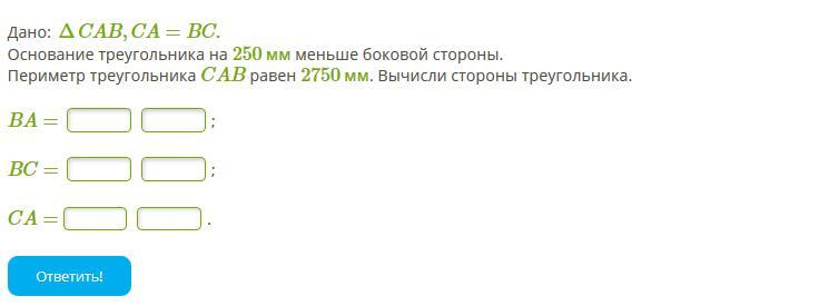 Если СА=ВС, то обе стороны можно принять за x.Тогда x-25см=AВ. Составим уравнение: