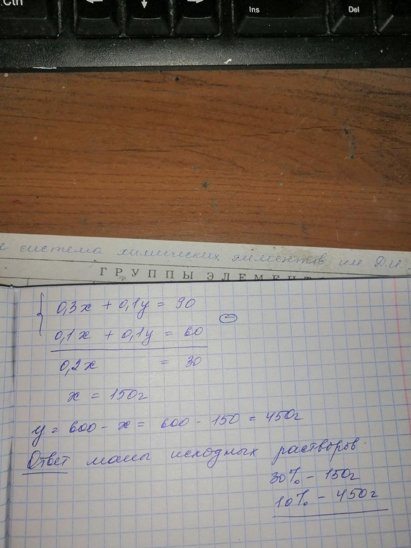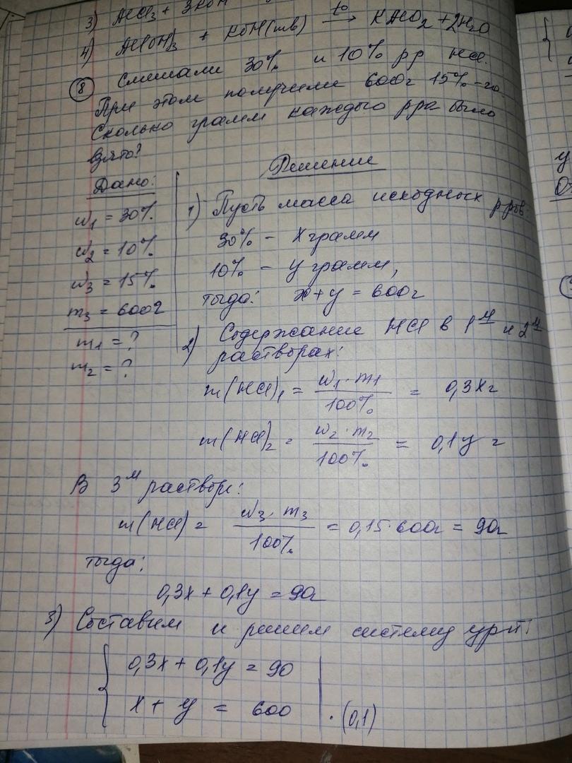 1. Смешали 30%-ый раствор соляной кислоты с 10%-ым и получили 600 г 15%-го. Сколько граммов каждого раствора было взято?