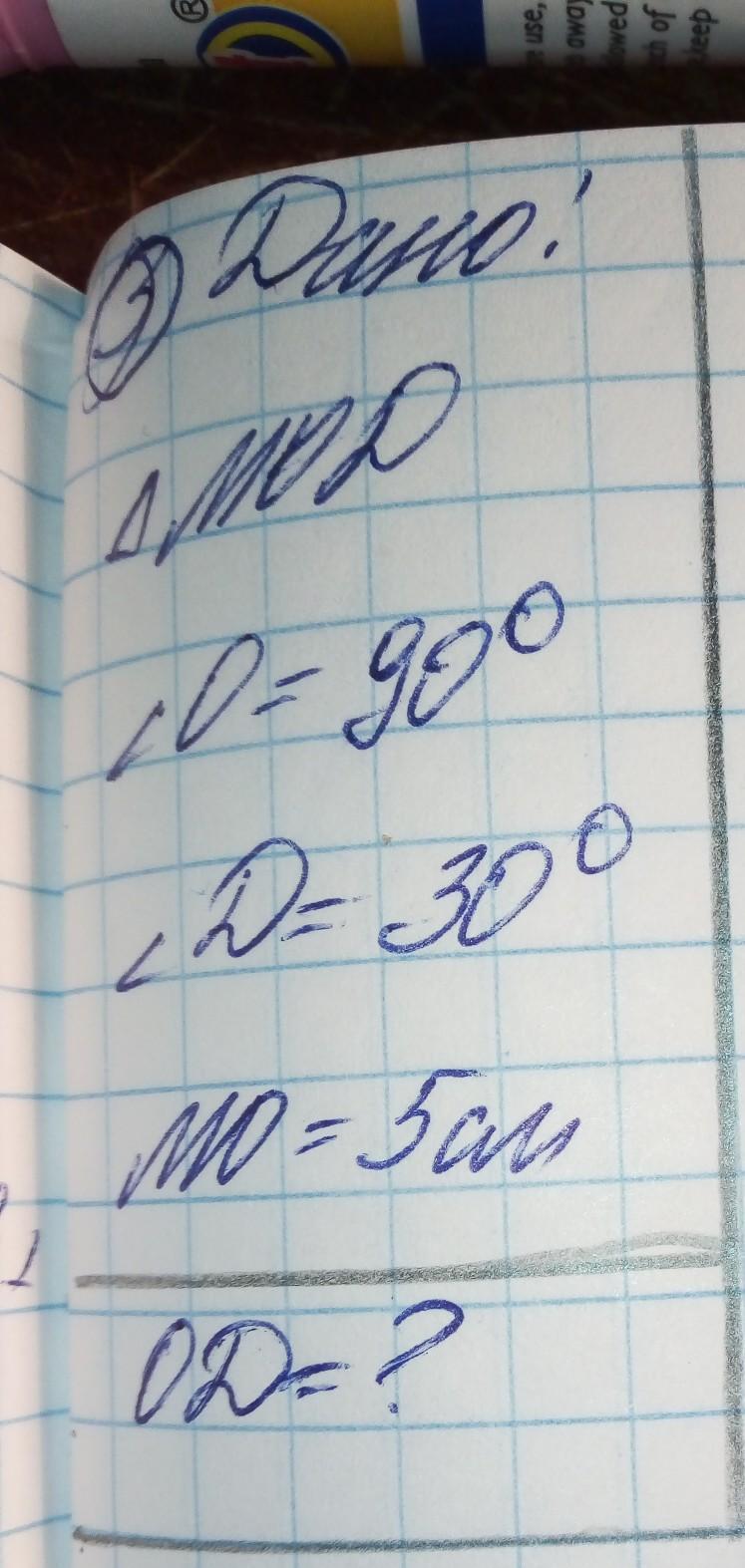 По правилу: напротив угла в 30 градусов лежит половина гипотенузы. Значит, МД=5×2=10.