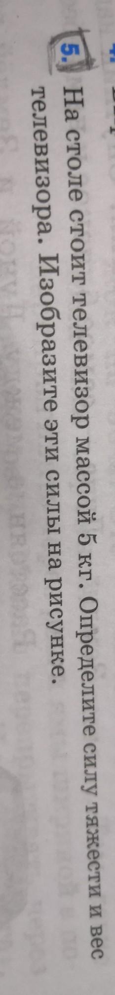 На столе стоит телевизор массой 5 кг. Определите силу тяжести и вес телевизора. Изобразите эти силы на рисунке.