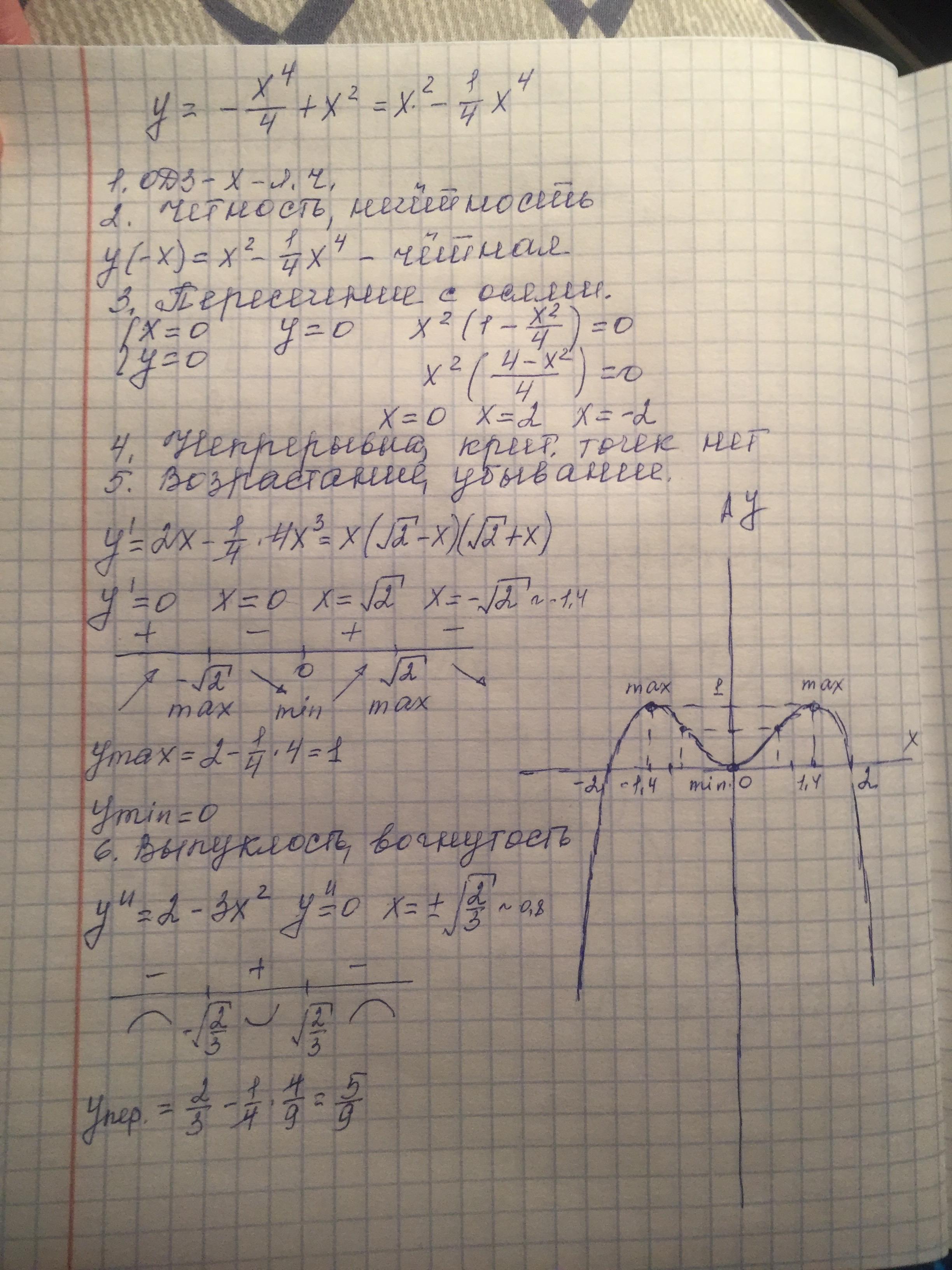 Исследовать функцию: у = - х^4/4 + х^2 (задание B1)