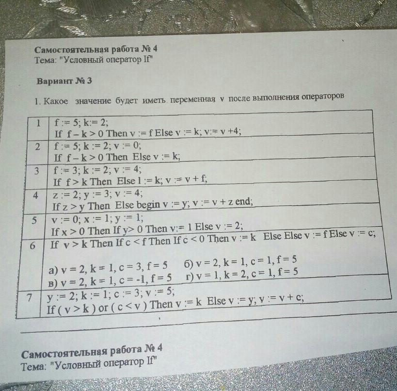 - Если f-k>0,то v:=F, в другом случае v:=k, v:=v+4