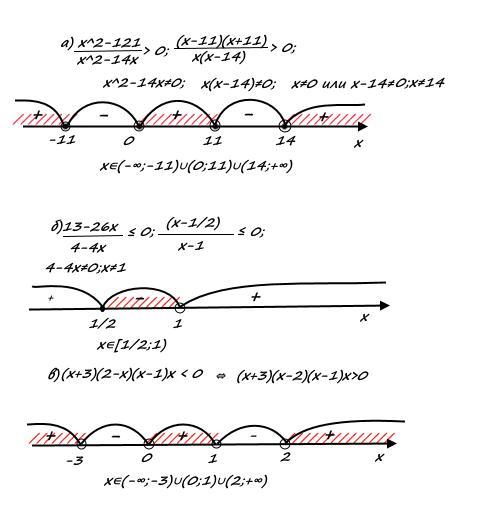 Наносим найденные точки на числовую ось и вычисляем знаки на каждом интервале (см.вложение)