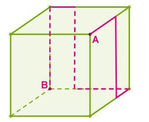 Муха ползает по поверхности куба вдоль красной линии от точки A к точке B.