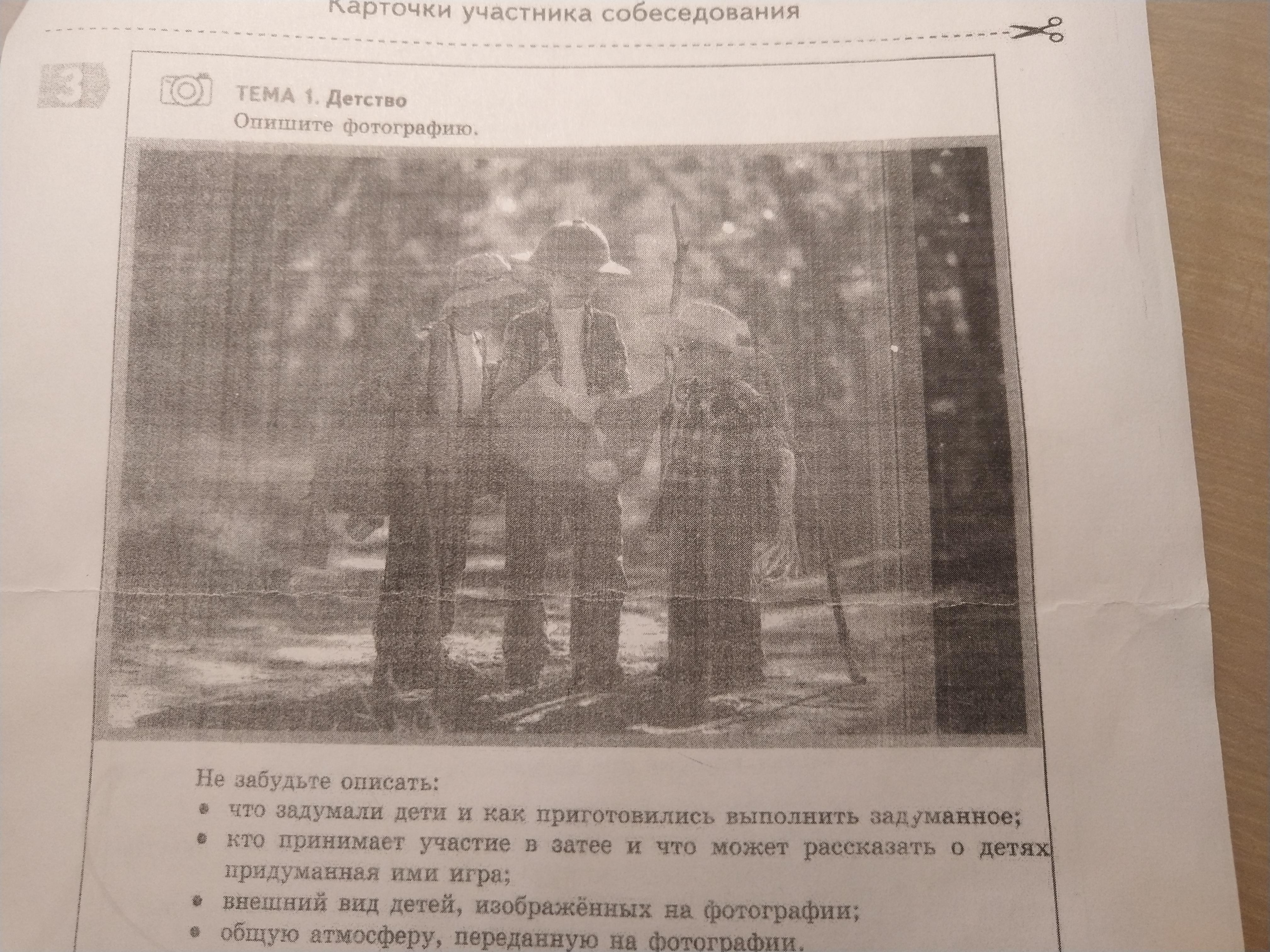 Ответ:Три Мальчика лет 7-8. в одежде путешественников. у одного есть карта. у двоих есть палки