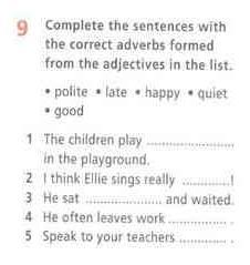 complete the sentences with the correct adverbs formed from the adjectives in the list.