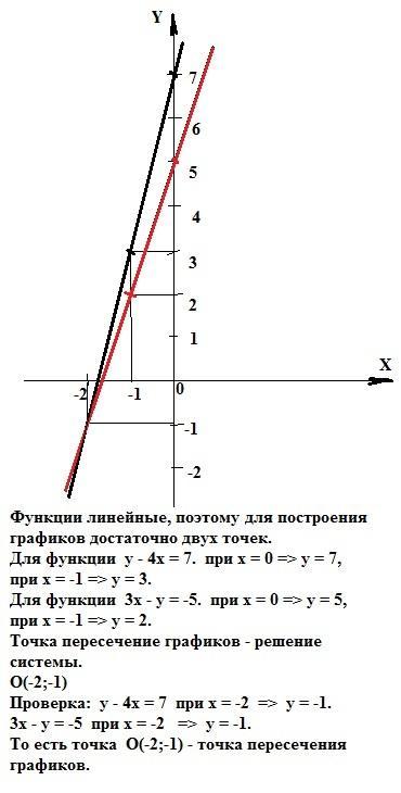 Проверка: y - 4x = 7 при x = -2 => y = -1.