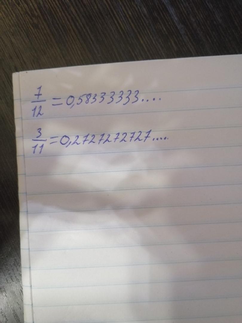 просто делишь числа друг на друга и все. Бесконечные десятичные,это когда после запятой числа повторяются бесконечно число раз
