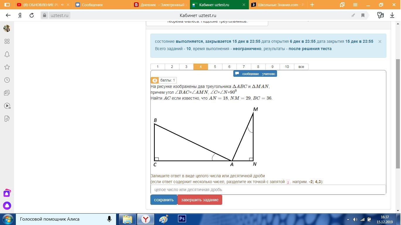 Если два угла одного треугольника соответственно равны двум углам другого, то такие треугольники подобны.Значит ΔСАВ подобен ΔNMА : ∠С=∠N по условию, ∠ВАС=∠АMN по условию В подобных треугольниках сходственные стороны пропорциональны :АС/ NM=ВС/NА ,