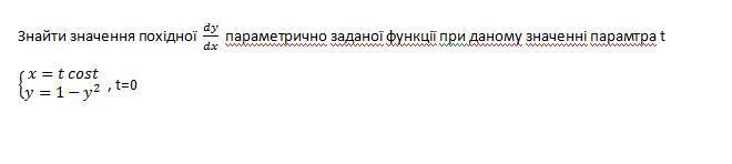 сначала нужно найти производную параметрично заданої функції, а потом в конце паодставить значение t