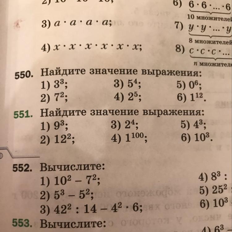 2)12²=12*12=144 4)1¹⁰⁰=1 6) 10³=10*10*10=1000