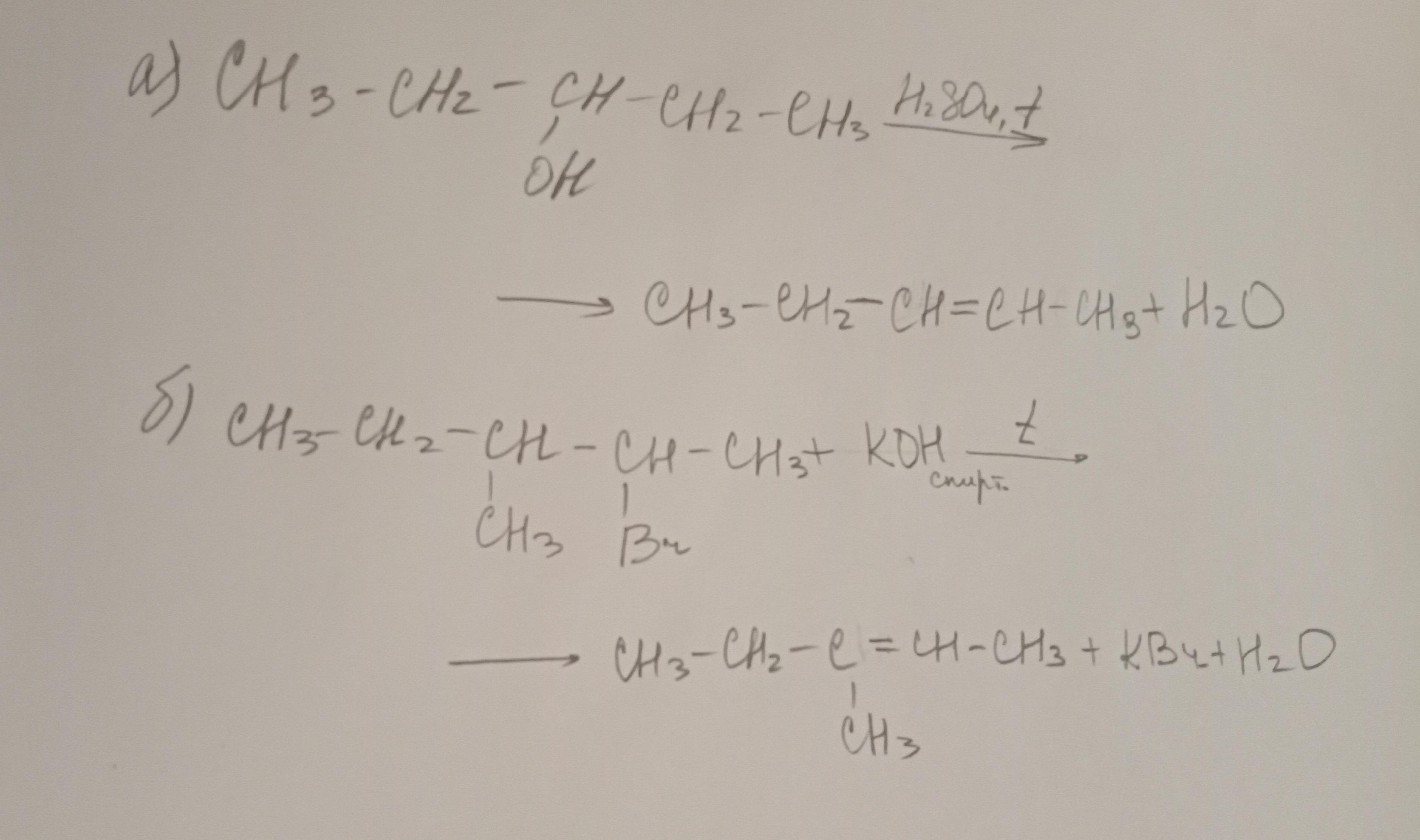напишите и назовите продукты реакции а) дегидратации спирта CH3-CH2-CH(OH)CH2-CH3; б) дегидрогалогенирования: CH3-CH2-CH(CH3)-CHBr-CH3