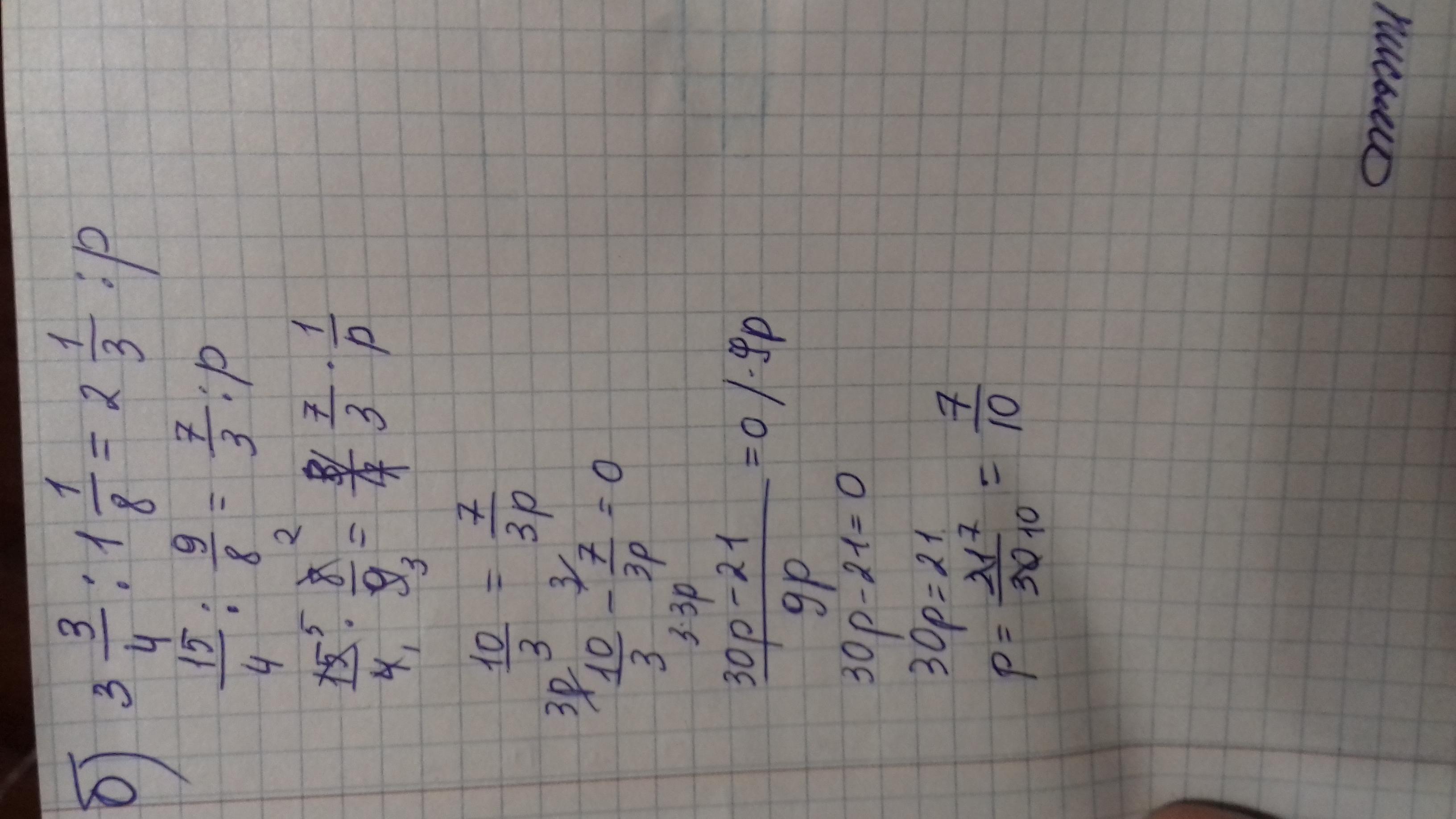б) 3*3/4 : 1*1/8= 2*1/3 :р