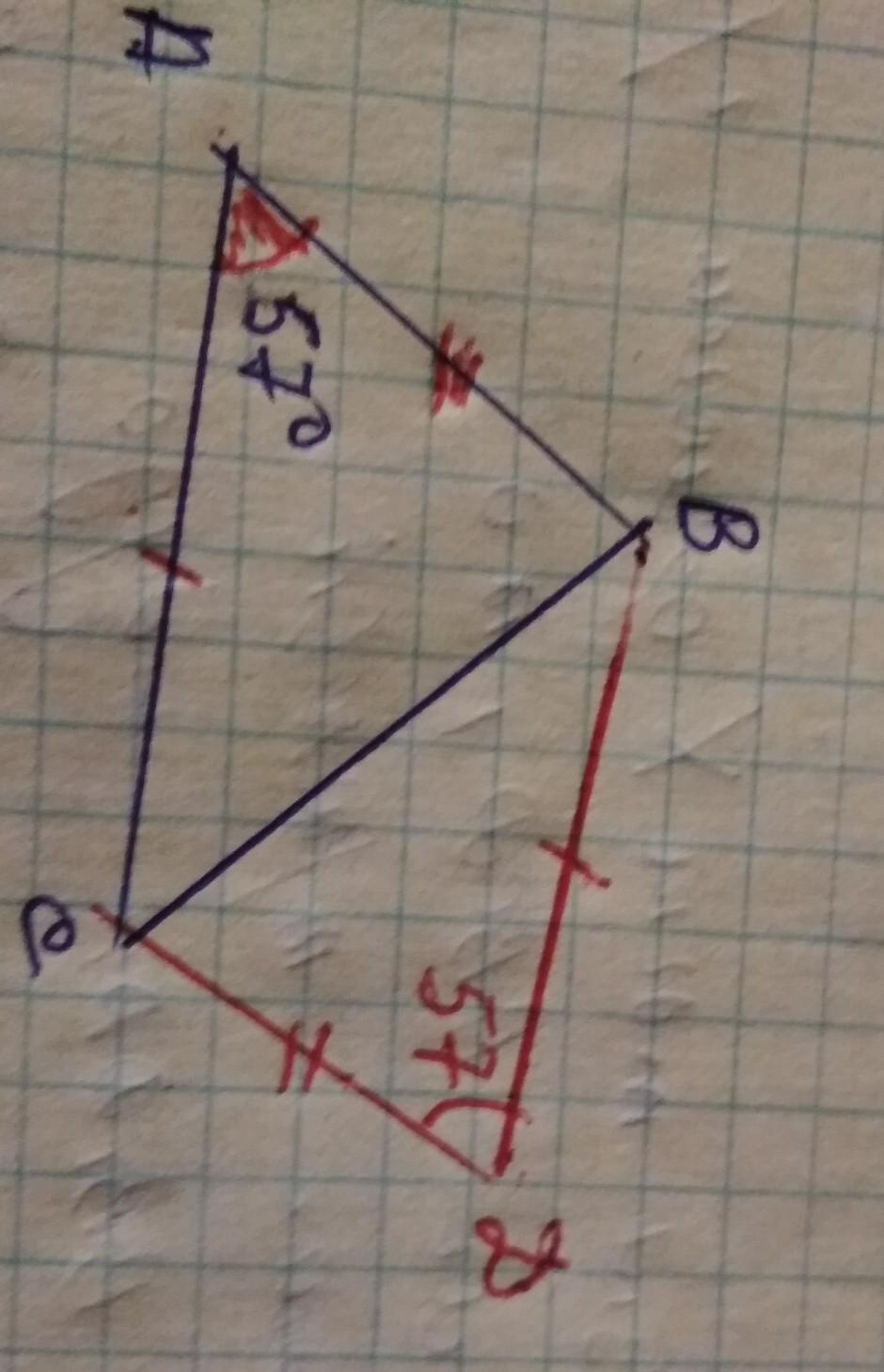 Даны 2 треугольника ABC и DCB точки a и d лежат по разные стороныпрямой BC.Известно, что AB=CD,AC=BD.Найдите угол BAC, если угол CBD равен 57 градусов.