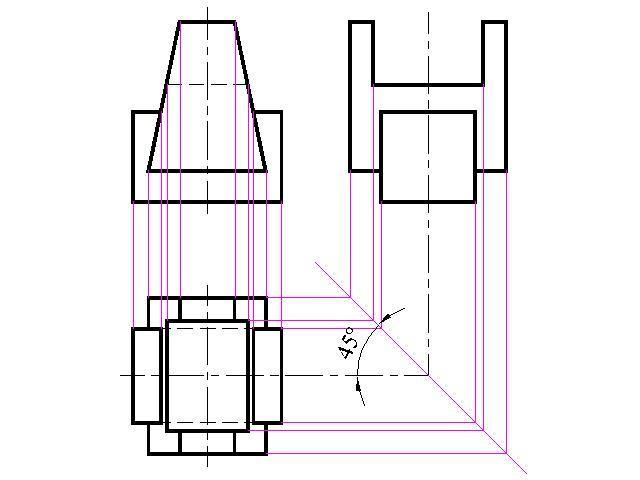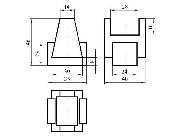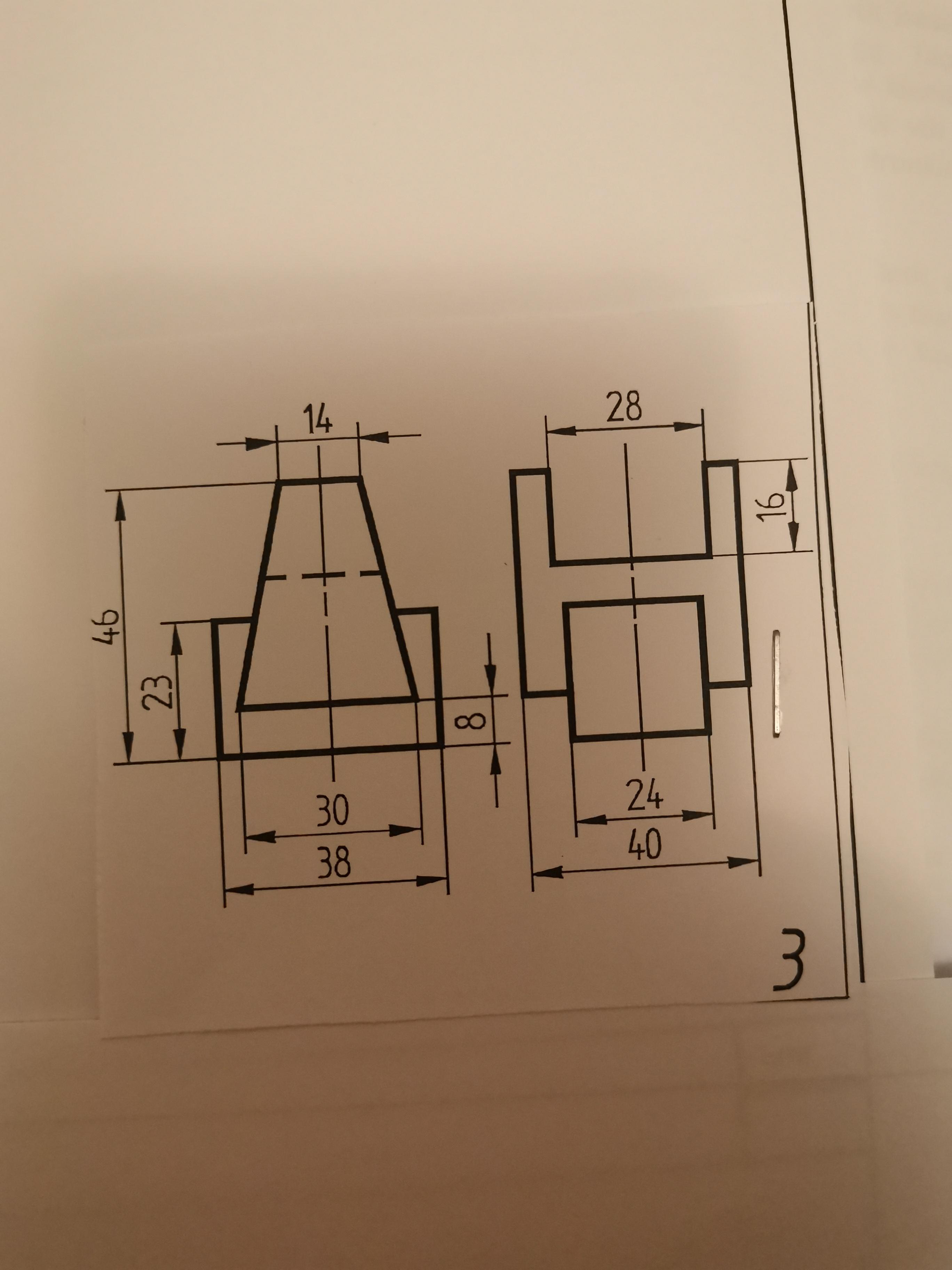 Здравствуйте. Помогите пожалуйста. По двум заданным видам достроить вид сверху и проставить размеры. Спасибо.