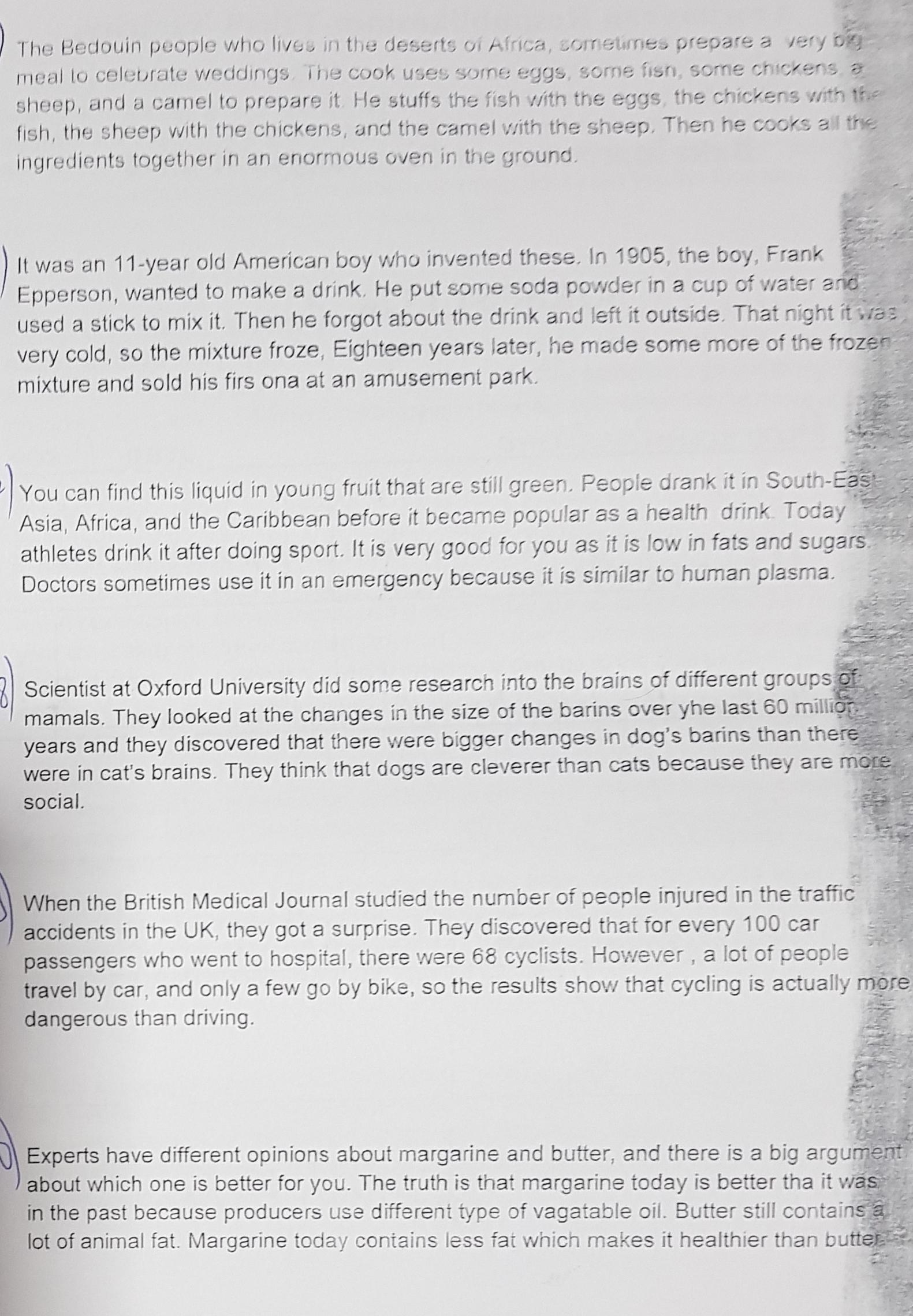 Бедуин, человек который живёт в пустынях Африки, иногда готовит огромное застолье(много еды, устраивает пир, что-то в этом роде) для празднования бракосочетания. Для приготовления еды используются яйца, немного рыбы, курицы, овца и верблюд. Он смешивает рыбу с яйцами, куриц с рыбой, овцу с курицами и верблюда с овцой. Далее он готовит все ингредиенты вместе в печи под землёй.