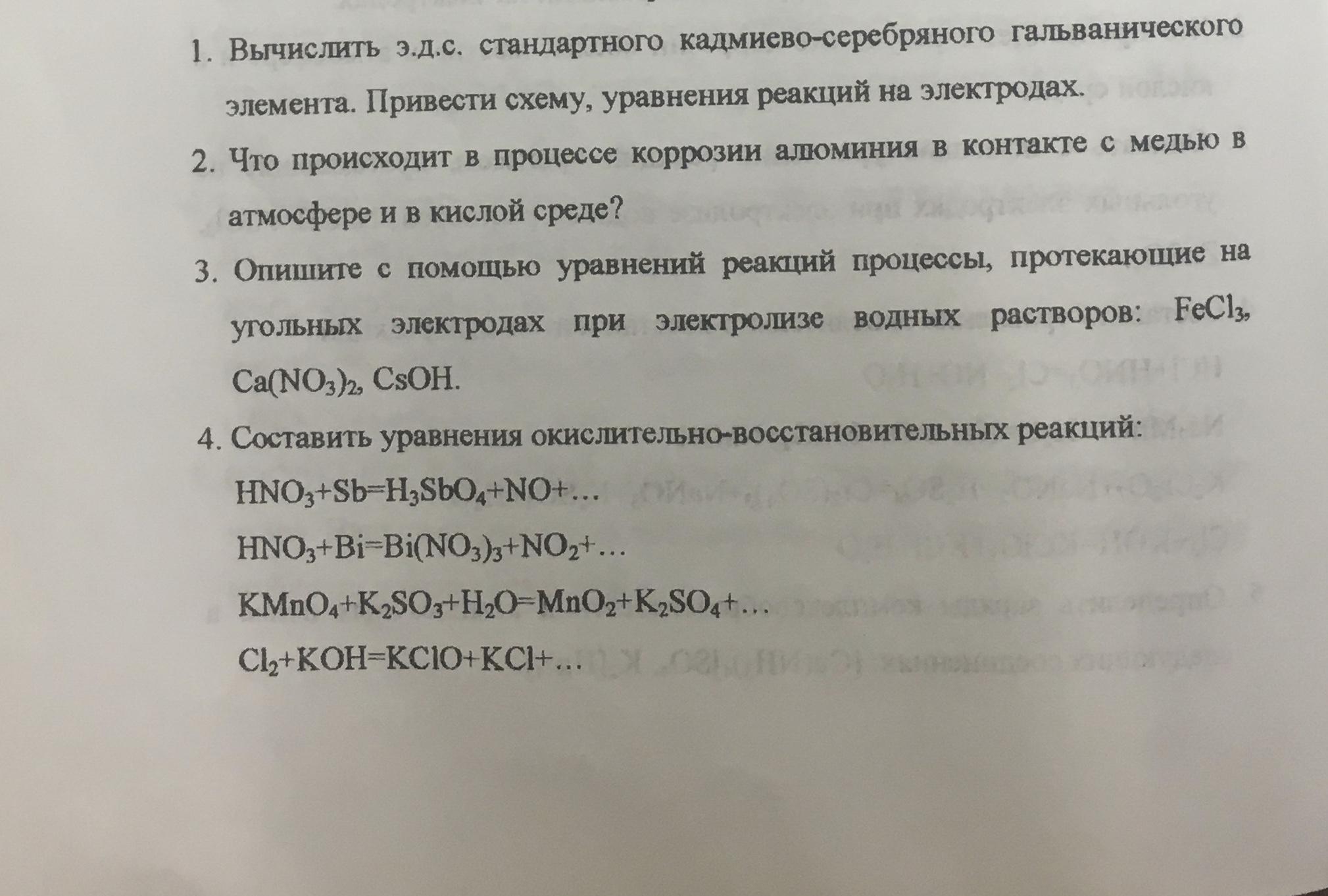 Вычислите э.д.с стандартного кадмиево-серебряного гальванического элемента. Привести схему, уравнения реакций на электродах.