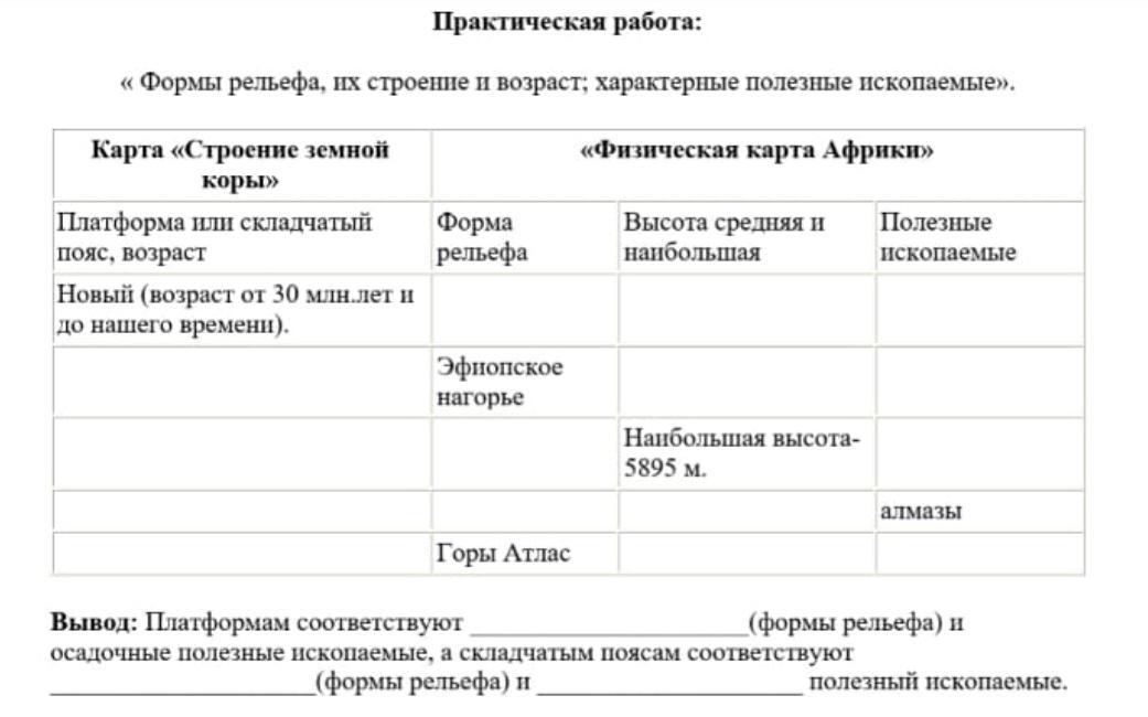 Область новой складчатости; горы Атлас; наибольшая высота - 4167 м; Ресурсы фосфоритов, а также марганцевых, железных и свинцово-цинковых руд
