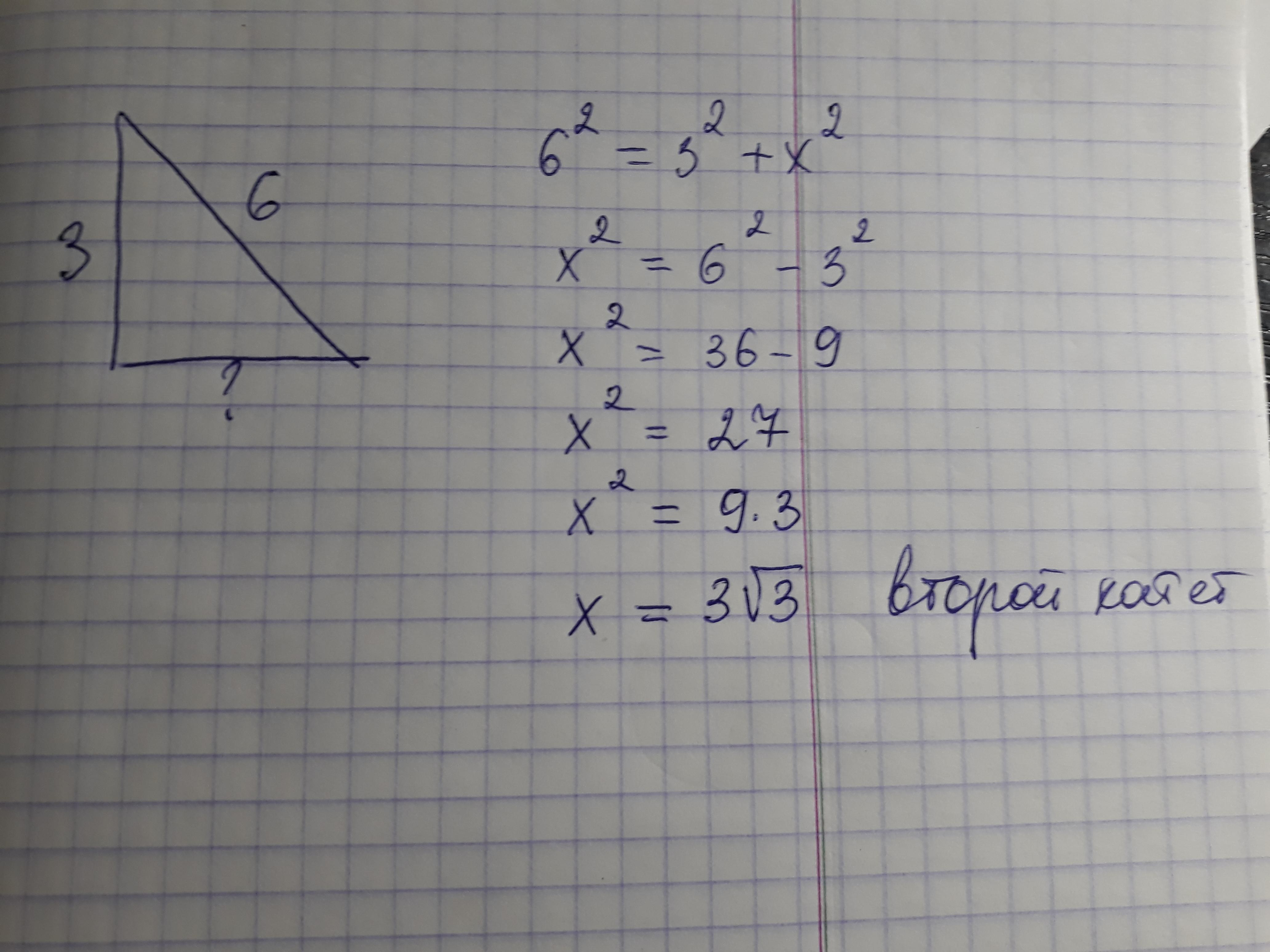 Значит, чтобы найти второй катет нужно от квадрата гипотенузы отнять квадрат катета