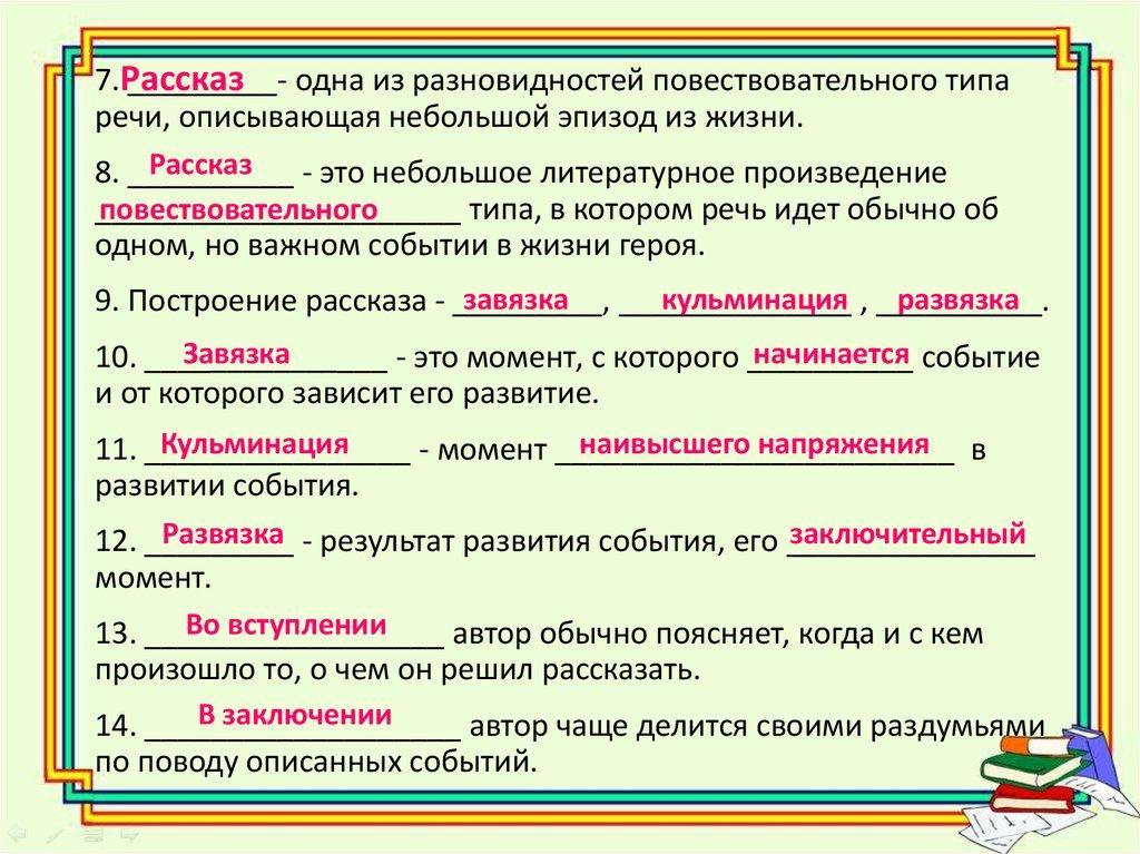 8. __________ — это небольшое литературное произведение ______________________ типа, в котором речь идет обычно об одном, но важном событии в жизни героя.