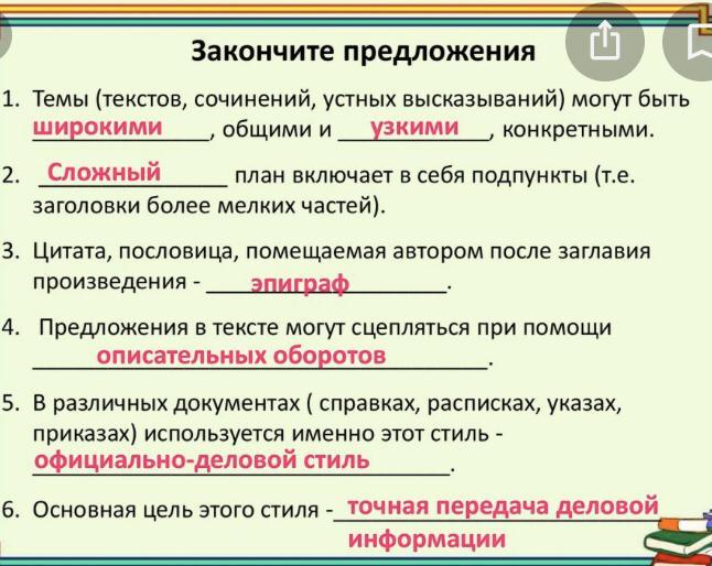 Темы (текстов, сочинений, устных высказываний) могут быть ______________, общими и ____________, конкретными.