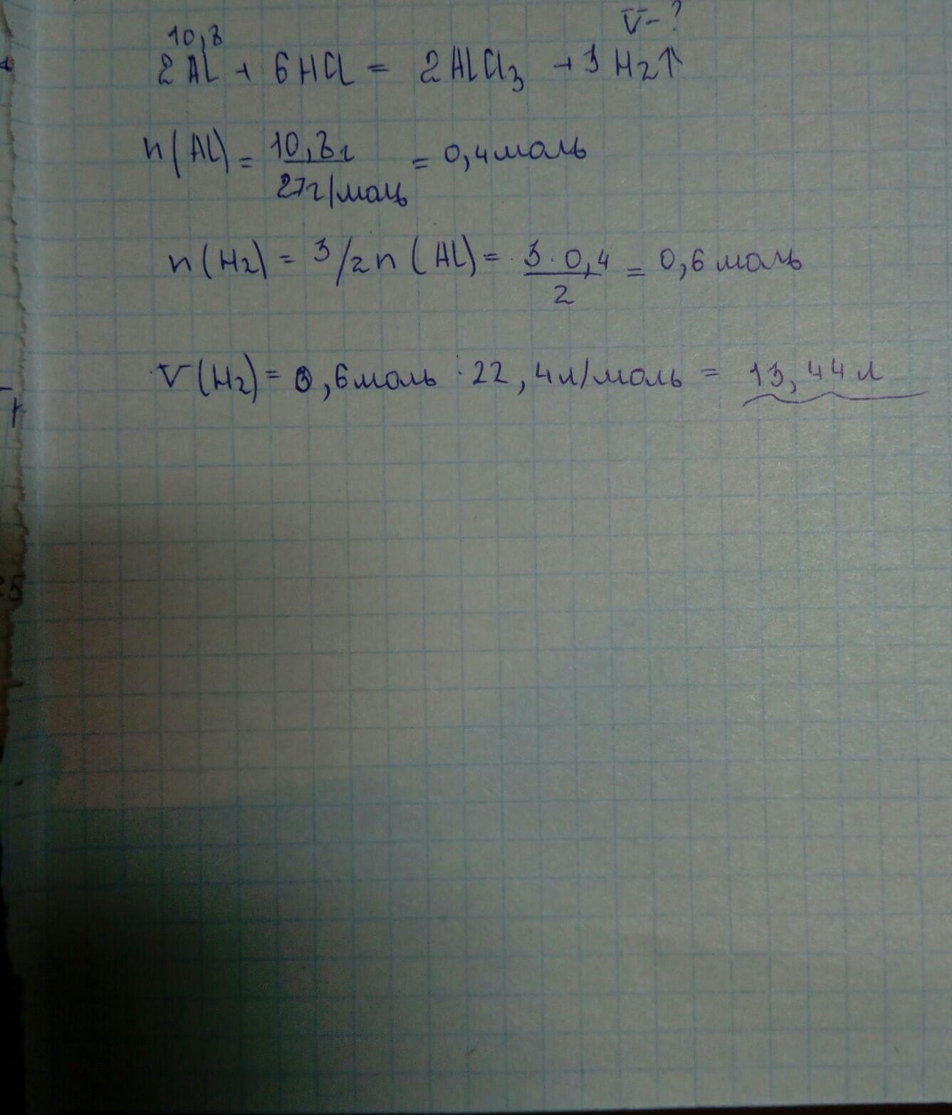 Найти объем водорода (н.у.), который образуется при взаимодействии 10,8 г алюминия с соляной кислотой.