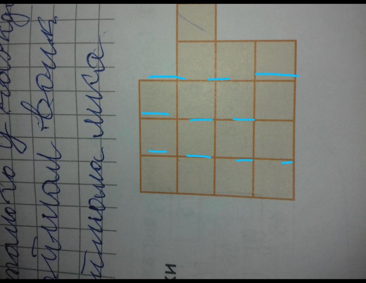 Площадь равна 16, следовательно 16/4 равно 4-по 4 клетки должно быть в каждой части