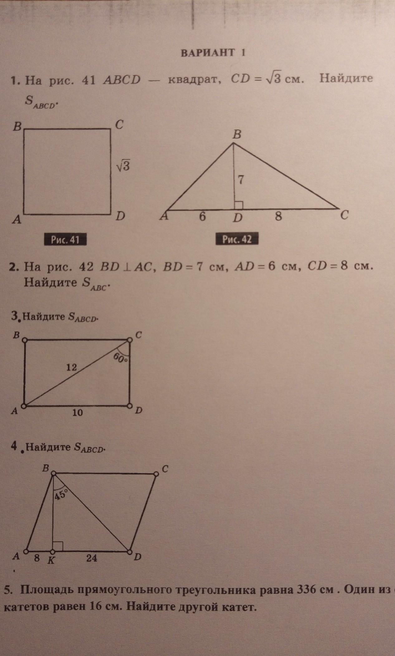 Площадь треугольника это произведение стороны на высоту, проведенную к этой стороне, и деленное на 2.