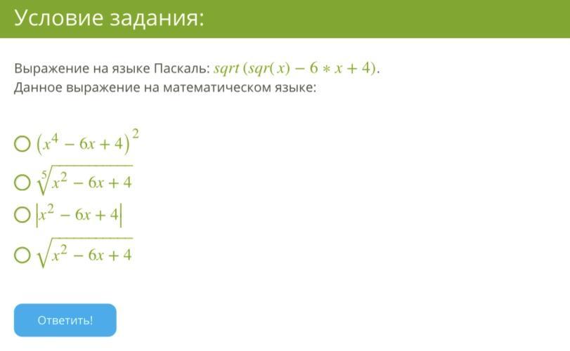 sqrt - корень квадратный, следовательно, четвертый вариант