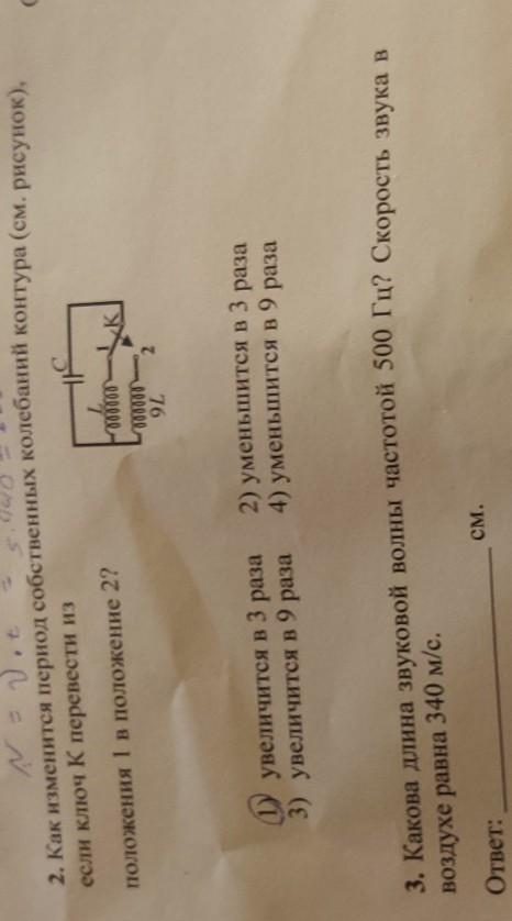 2.Ответ правильный. тк это вычисляется по обычной формуле свободных колебаний контура(фото прилагается)
