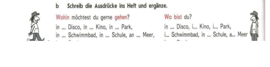 in das (ins) Schwimmbad, in die Schule, an das (ans) Meer