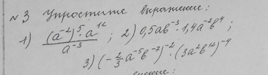3)(-2/3a^-5*b^-7)^-2 * (3a²b^12)^-4=9/4a^10b^14 *(1/3)^4a^-8*b^-48= =1/36a²b^-34=a²/36b^34