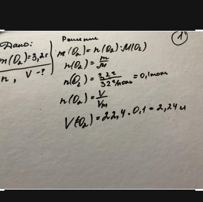 1 найдите количество вещества и объём кислорода массой 3,2 г