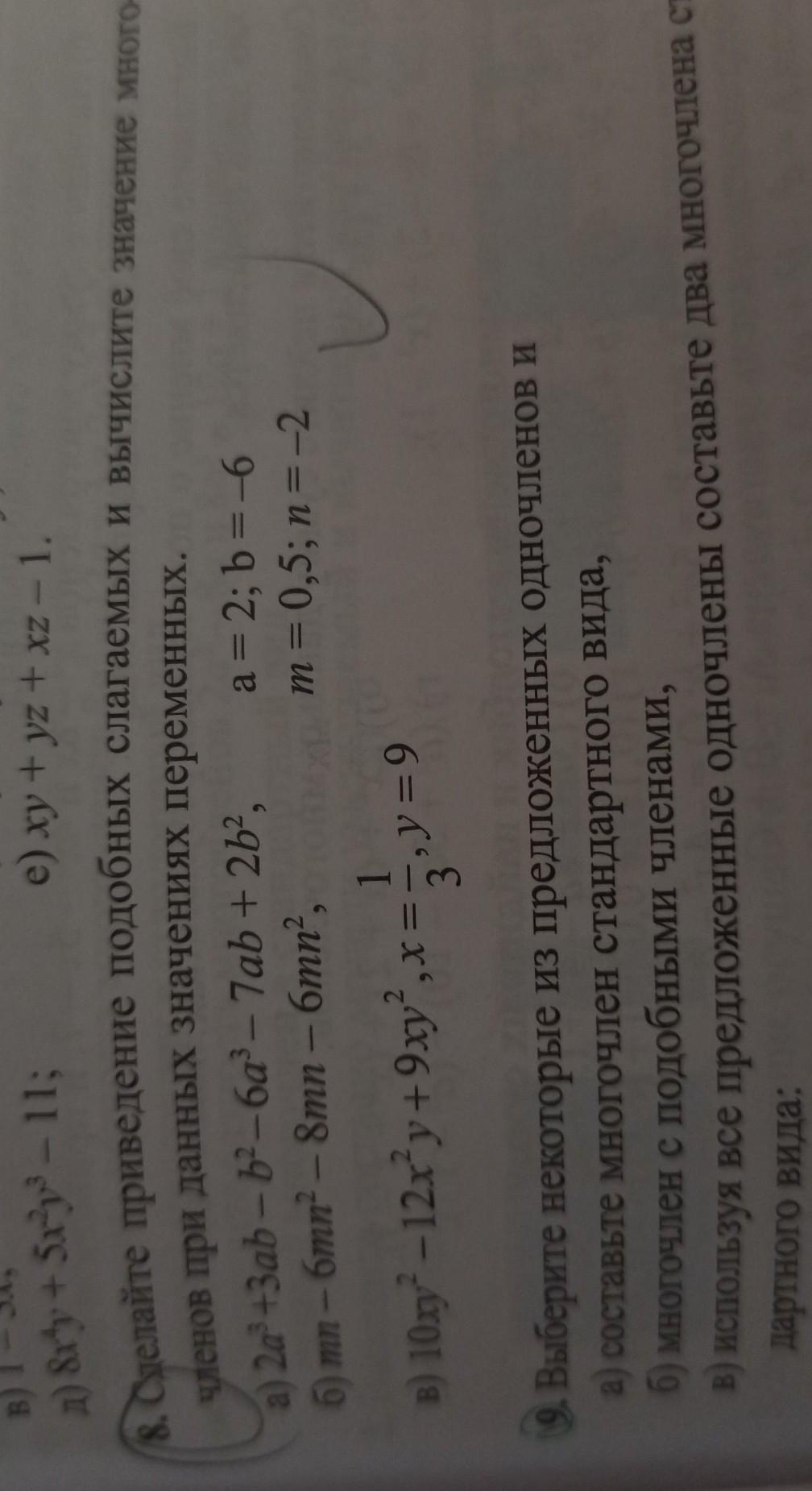 Б)-12mn^2-7mn=-12*0,5*4-7=-31