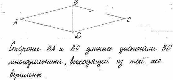 Может ли сторона многоугольника быть длиннее диогонали, если они выходят из одной и той же вершины? Проиллюстрируй свои ответ.