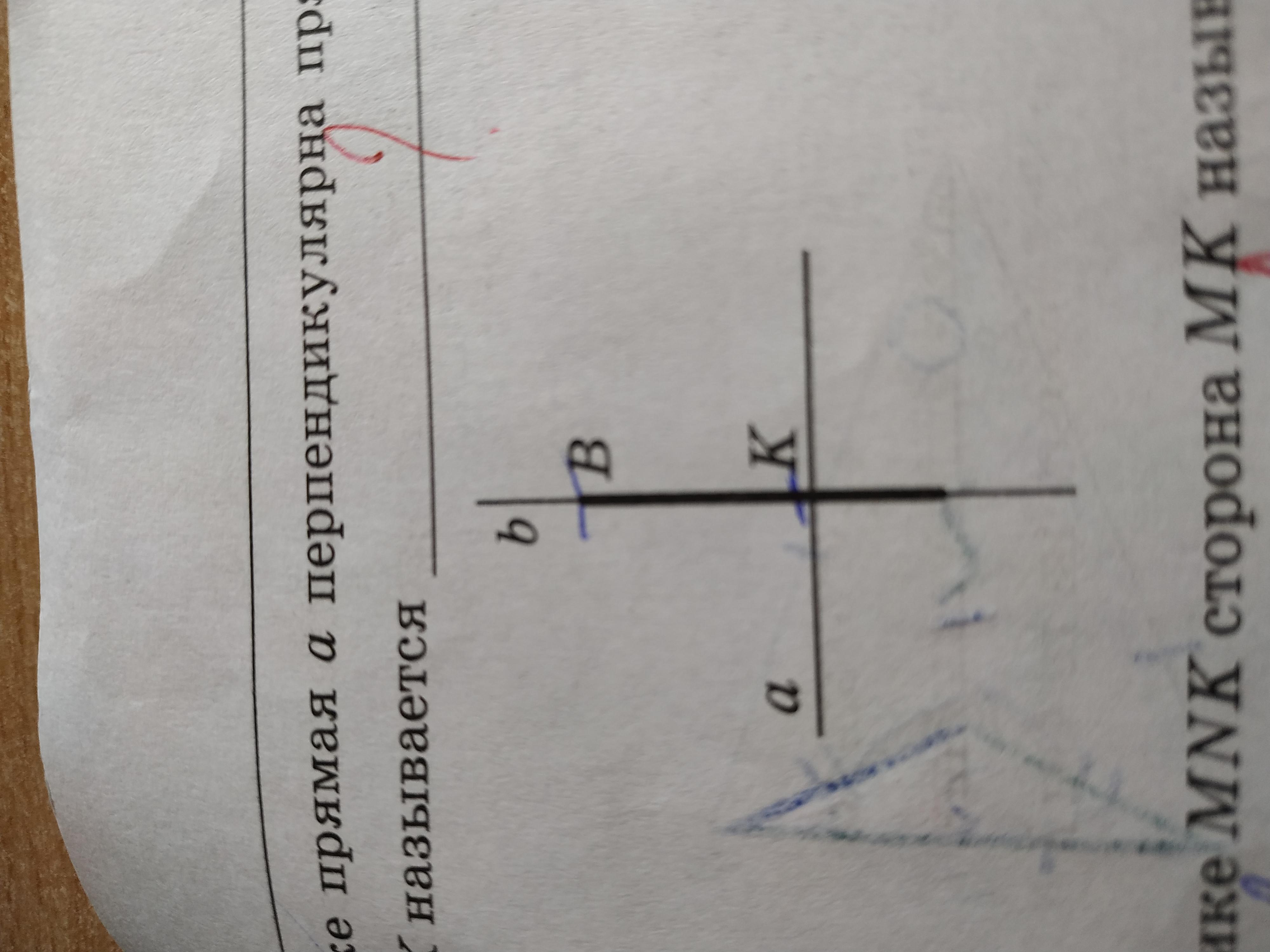 На рис. Прямая А перпендикулярно прямой Б. Тогда отрезок ВК называется... ПОМОГИТЕ ПОЖАЛУЙСТА