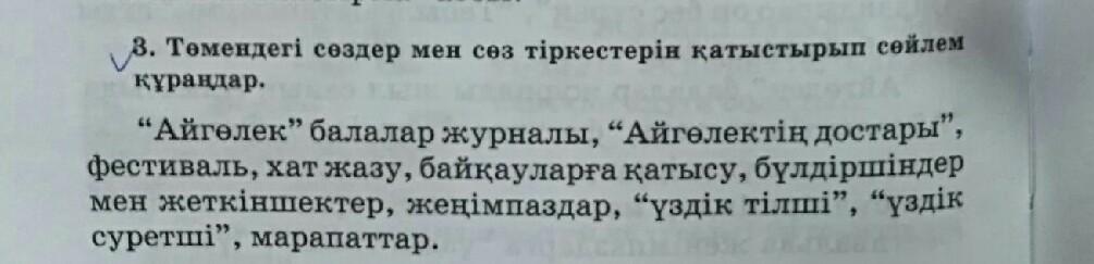 Ответ: 1)Мен "Айгөлек" балалар журналының хат жазу байқауларына қатысып, "үздік тілші" марапатын алдым.