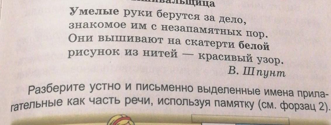 Прилагательные: Умелые,знакомое, незапамятных,белой, красивый