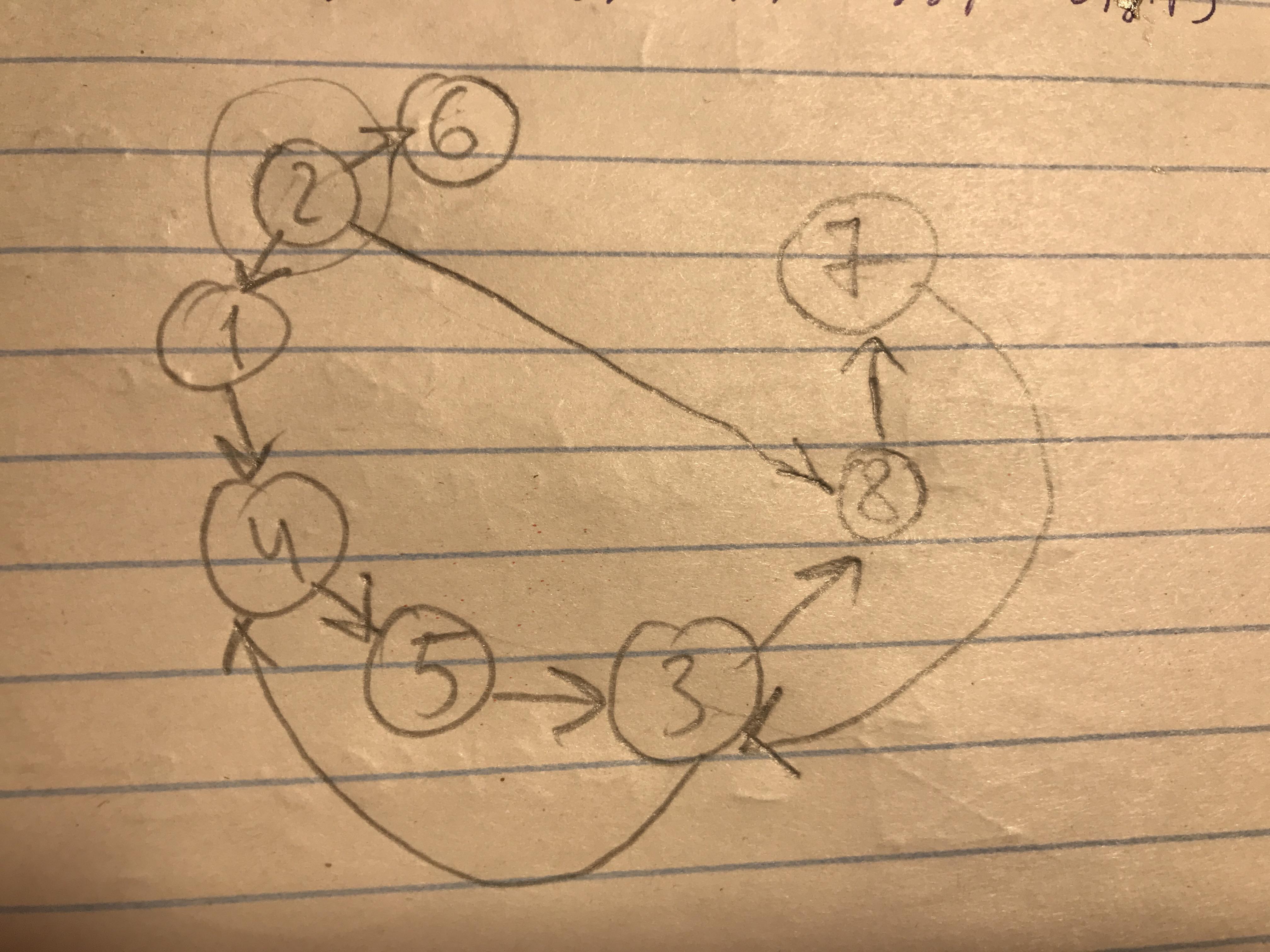 В Волшебной стране есть 8 городов, пронумерованных числами от 1 до 8, и несколько дорог, соединяющих эти города. В связи с наступлением зимы на каждой дороге введено одностороннее движение. Король хочет перенести столицу страны в тот город, из которого можно добраться до всех остальных по этим дорогам, возможно, по пути проезжая через промежуточные города. Определите, в каком городе должна быть столица. В ответ запишите номер этого города (если вариантов ответа несколько, запишите наименьший номер).