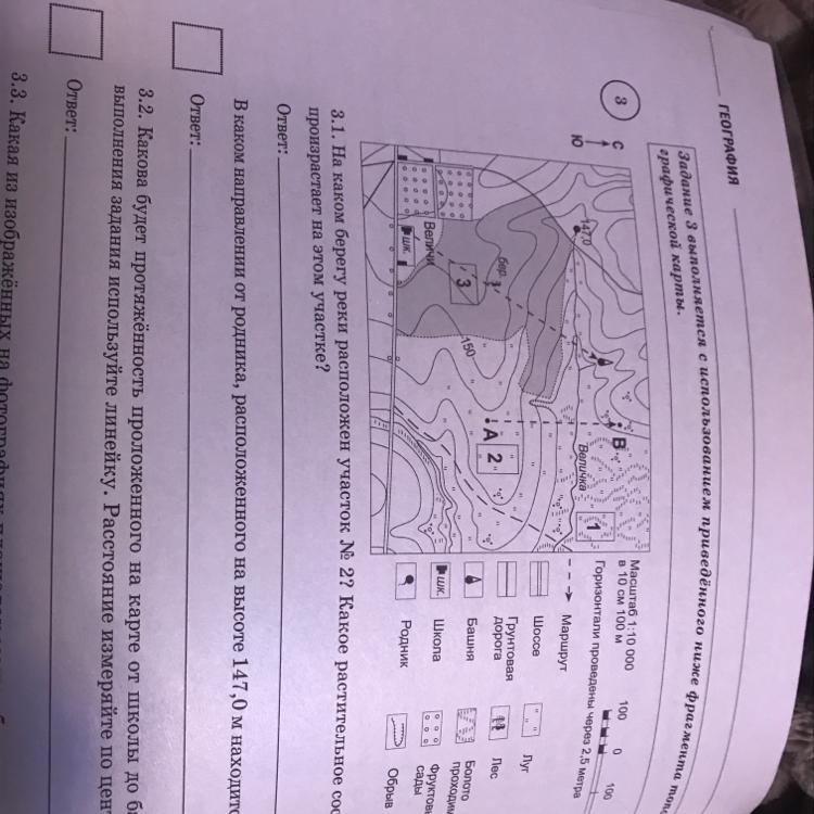 Помогите пожалуйста задание 3 выполняется с использованием приведённого ниже фрагмента топографической карты