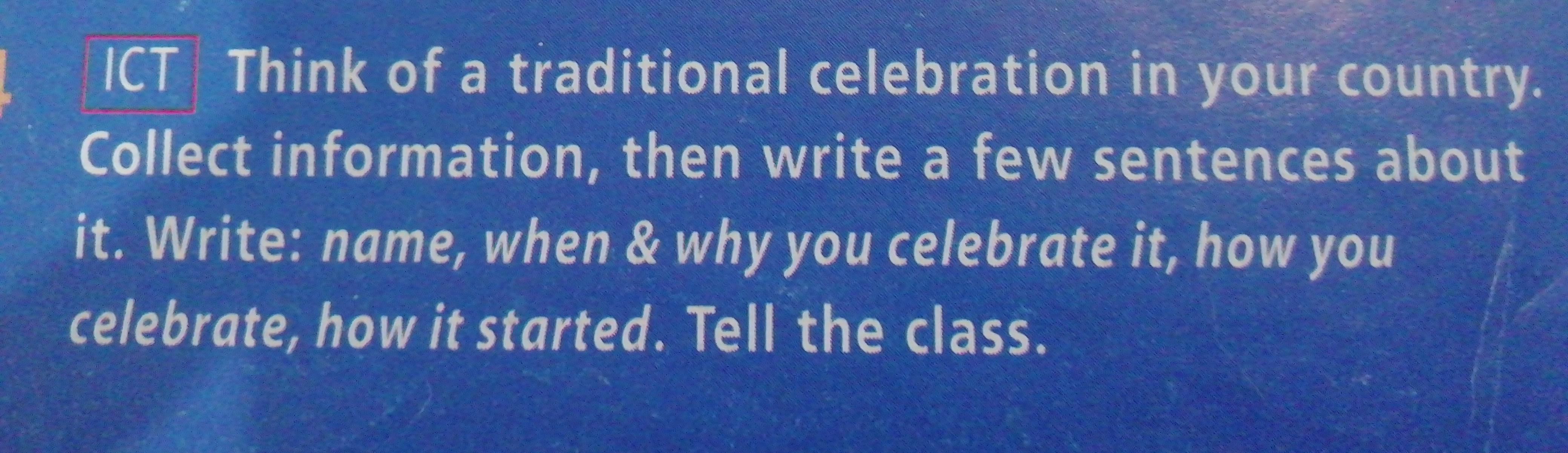 My country celebrates New Year on Decembre 31. We celebrate New Year because it is a tradition of our country. In the New Year my family meets together and gives each other gifts. People began celebrate New Year with Peter I.
