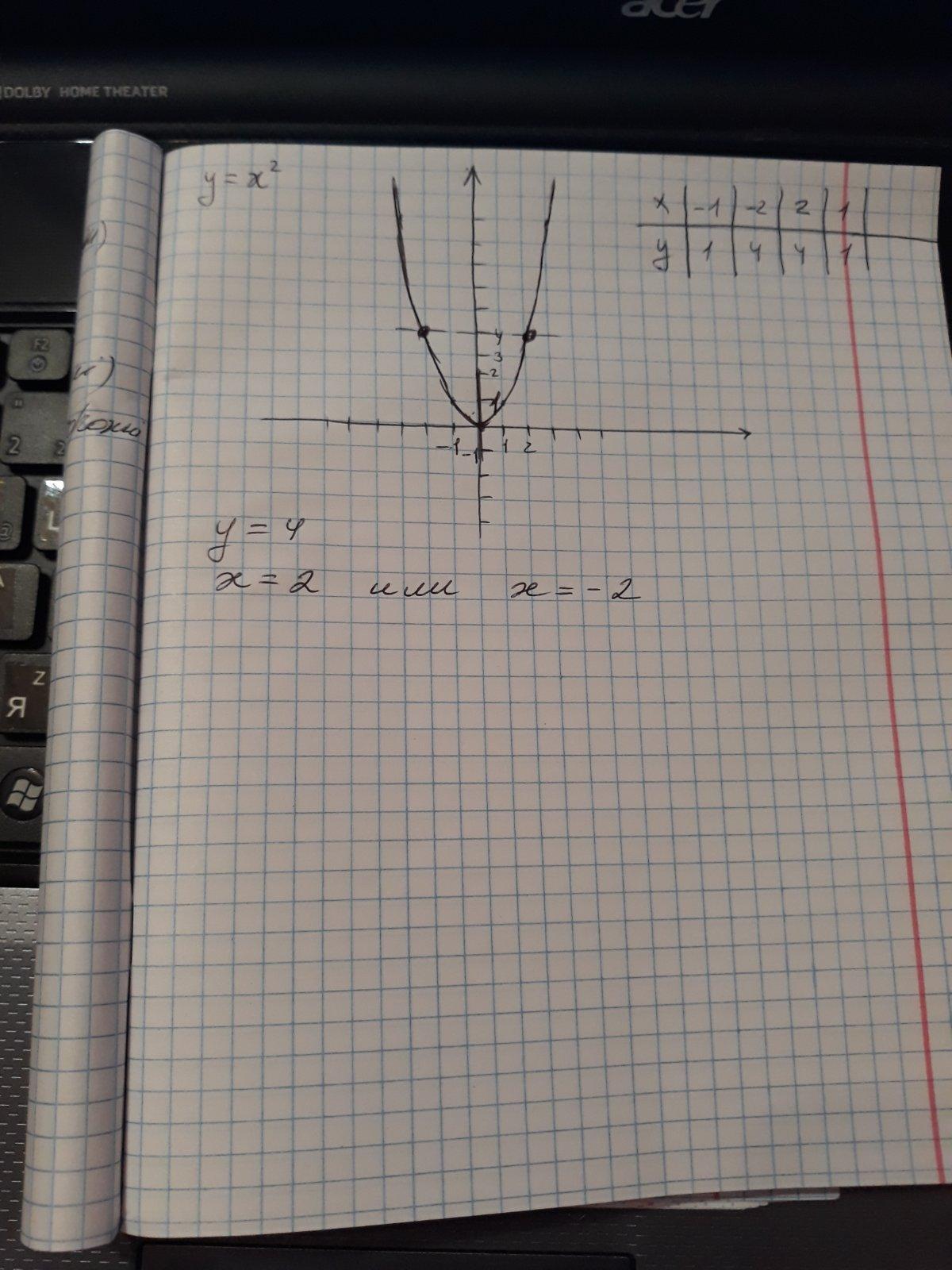 Постойте график функции y=x в квадрате . С помощью графика функции определите при каких значениях х , значение y=4