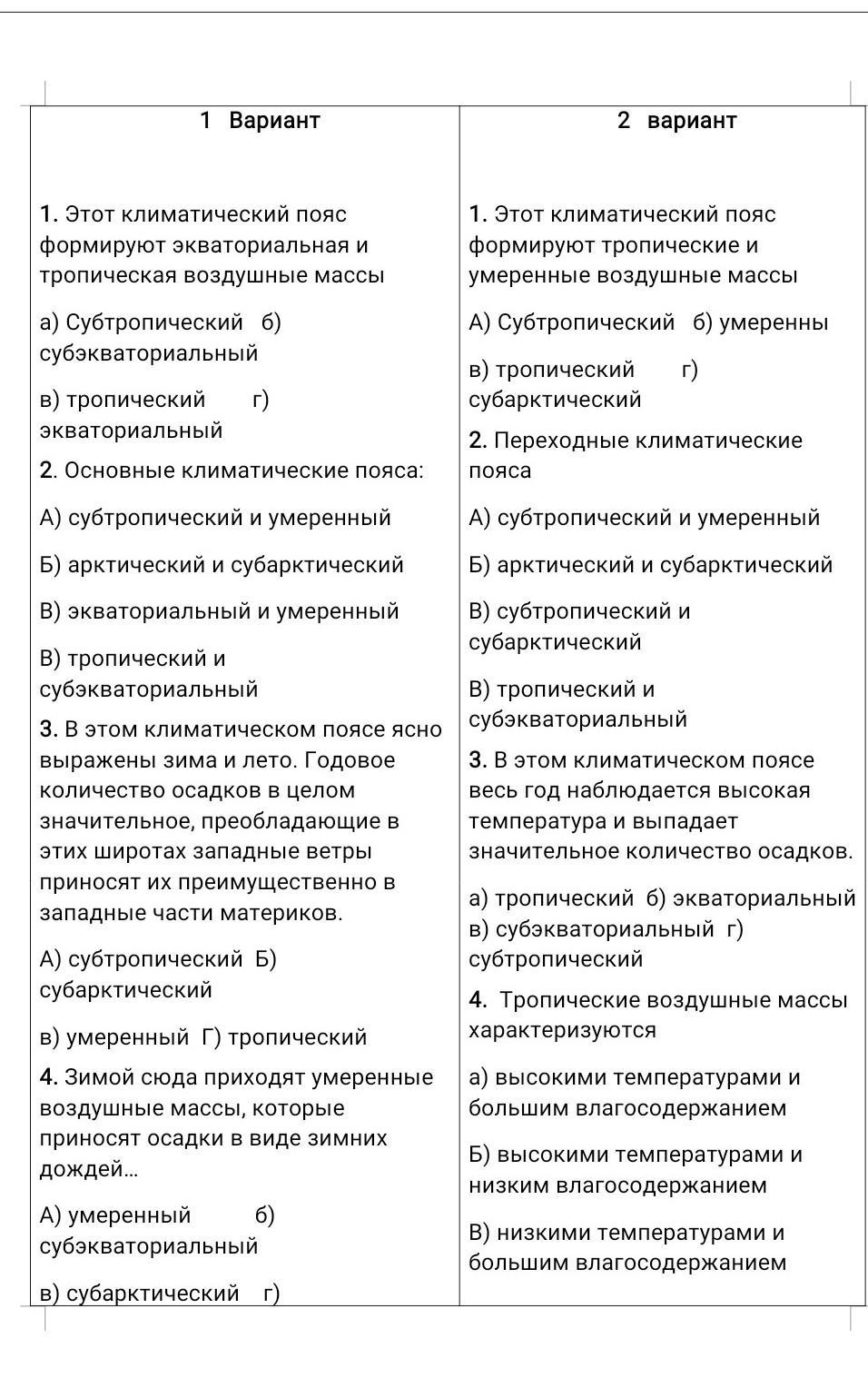 1. Этот климатический пояс формируют экваториальная и тропическая воздушные массы:субэкваториальный.