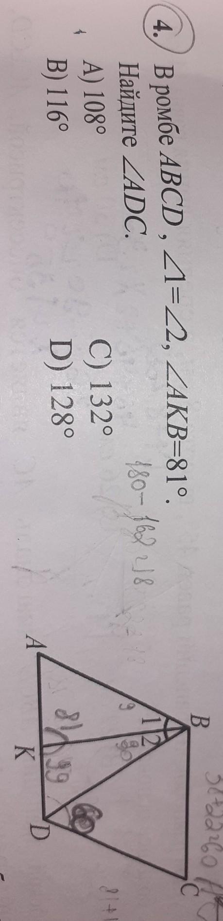 Углы ADC и DAB являются односторонними углами при параллельных АВ и СD и секущей AD. Их сумма 180 градусов. Значит второй угол 180-120 = 60 градусов.