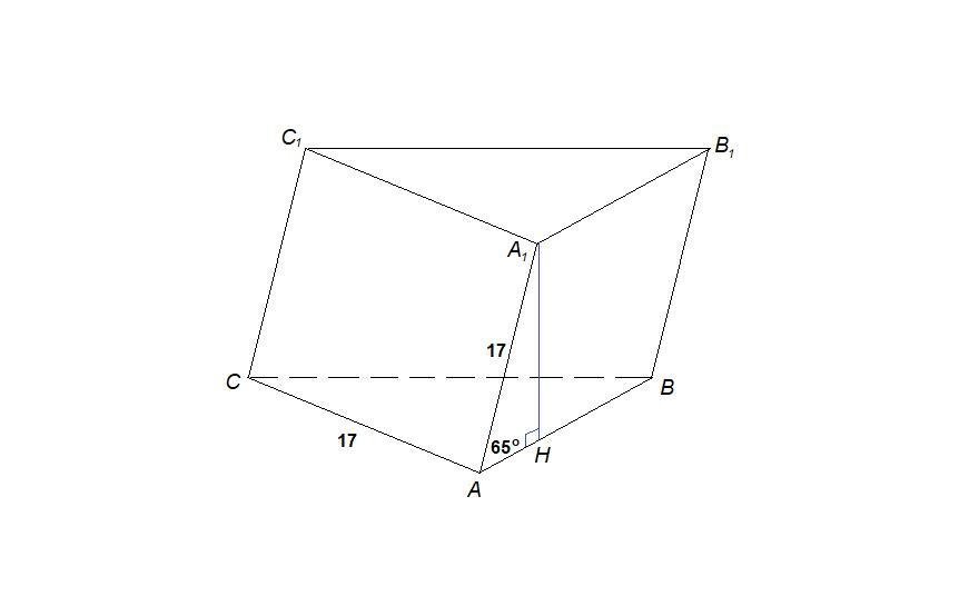 A₁H = AA₁ · sin 65° ≈ 17 · 0,9 ≈ 15,3 см