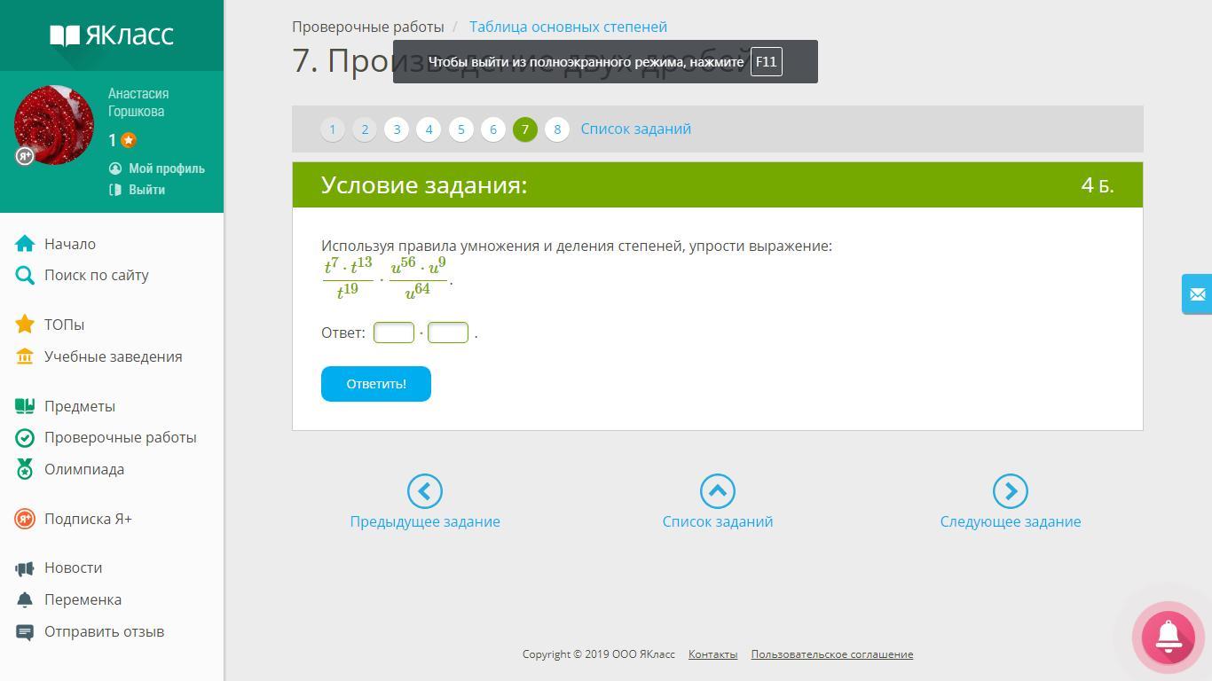 разберем сначала первый множитель. в числителе (t^7*t^13), по правилу умножения степеней это t^(7+13)=t^20. так же по правилу деления степеней t^20/t^19=t^1=t. первый множитель - t.
